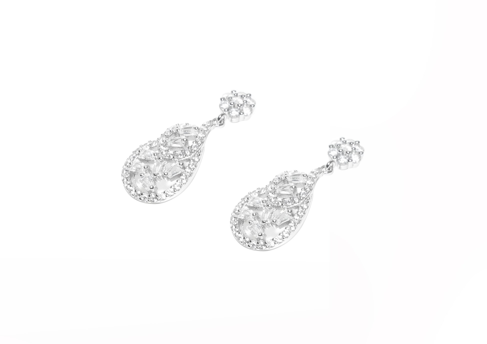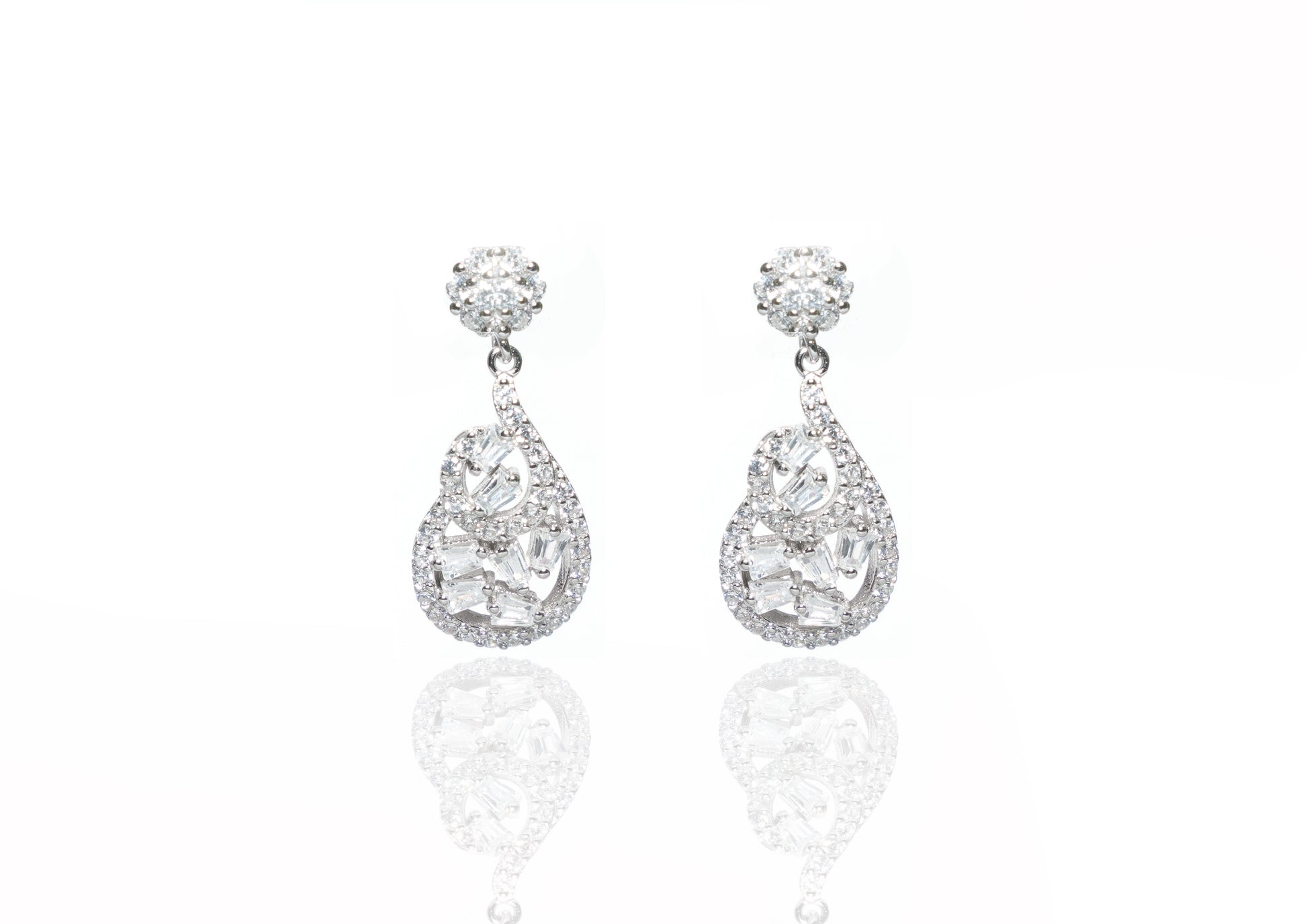 Elevate your elegance with the Celeste Teardrop Silver Earrings – a dazzling expression of sophistication and charm. Crafted entirely in premium silver, these earrings feature an intricate teardrop design encrusted with shimmering cubic zirconia stones. The floral stud detail adds a timeless touch, making them perfect for both formal occasions and evening soirées. Lightweight yet luxurious, these earrings promise to be a standout addition to your jewelry collection.