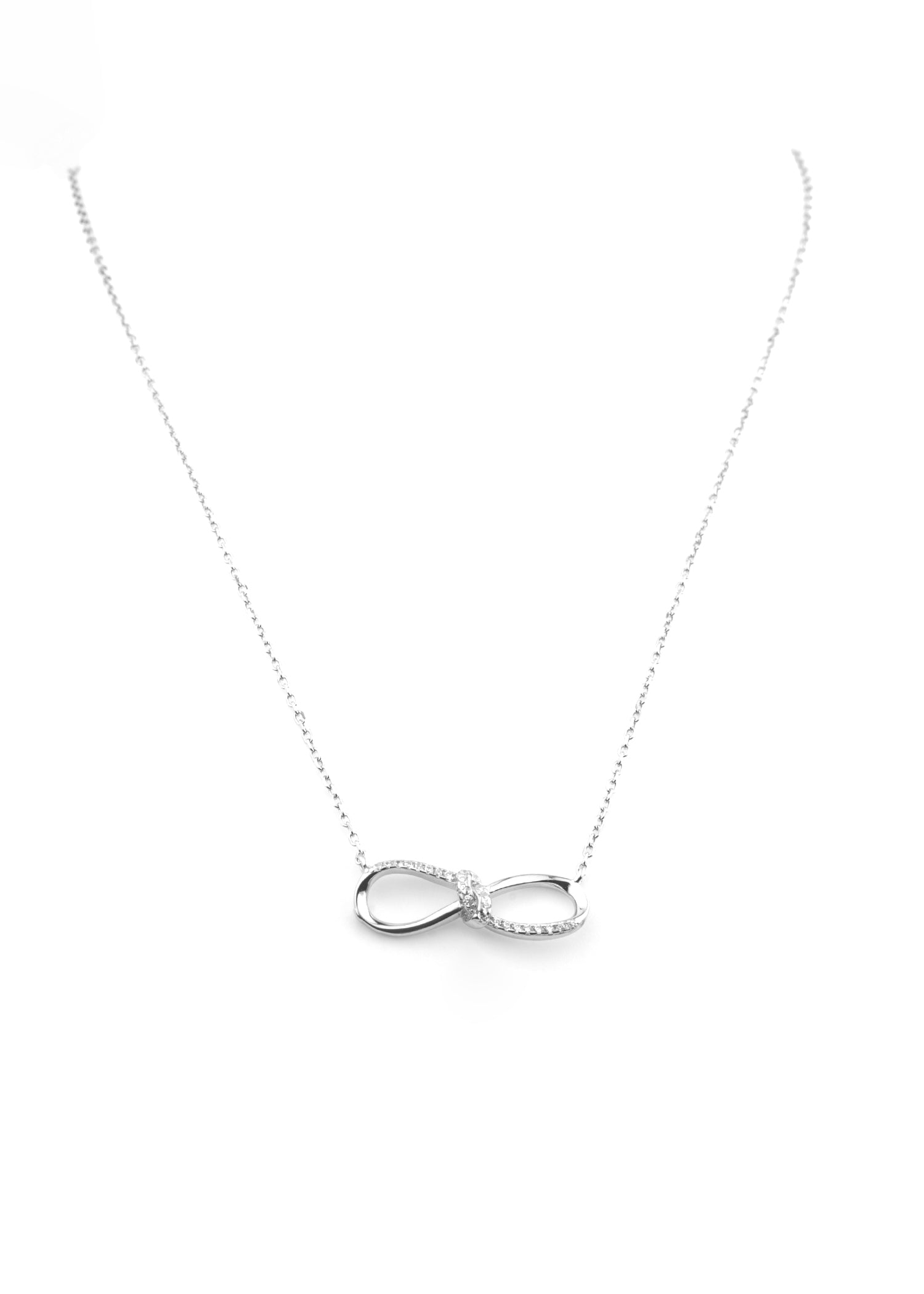This elegant silver necklace features a sleek infinity symbol adorned with sparkling cubic zirconia stones, symbolizing endless love and connection. Crafted from high-quality sterling silver, it offers a delicate yet striking design, perfect for everyday wear or special occasions.