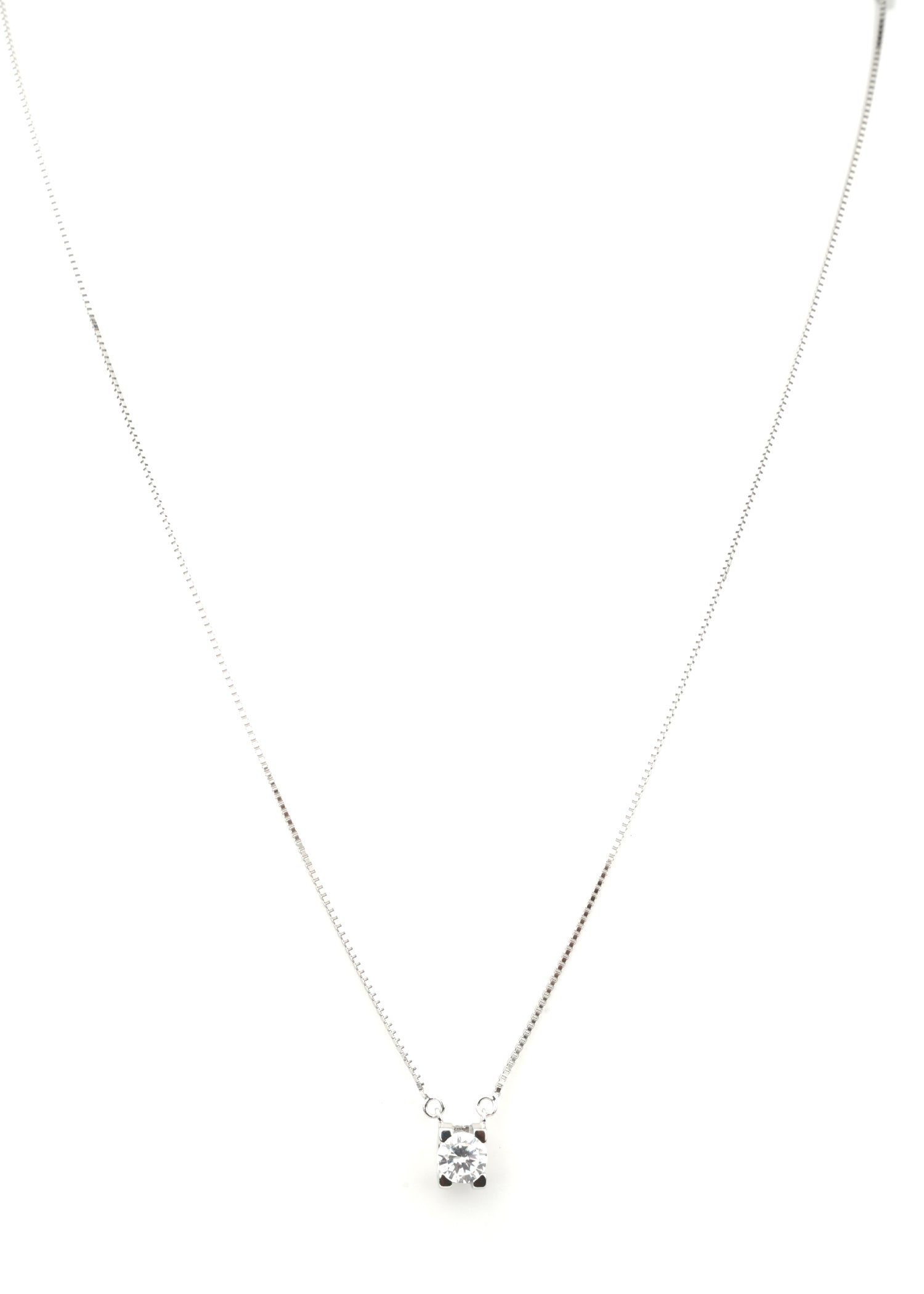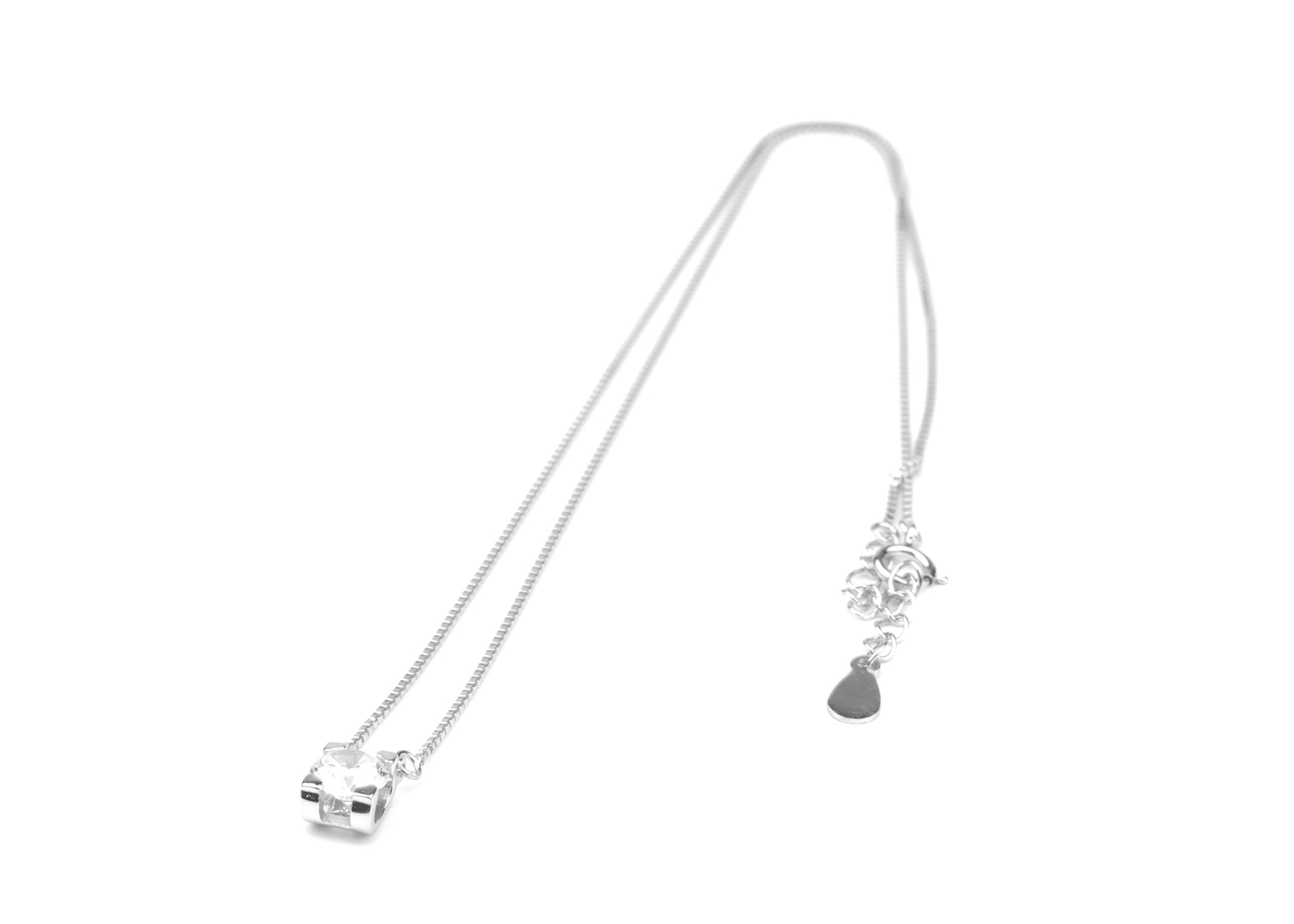 This minimalist necklace features a single, radiant crystal in a classic round cut, set in a simple sterling silver prong setting. The pendant hangs from a delicate silver chain, offering a timeless and versatile look suitable for everyday wear or special occasions. The chain is crafted from sterling silver, ensuring durability and a polished finish that complements the sparkling crystal centrepiece.