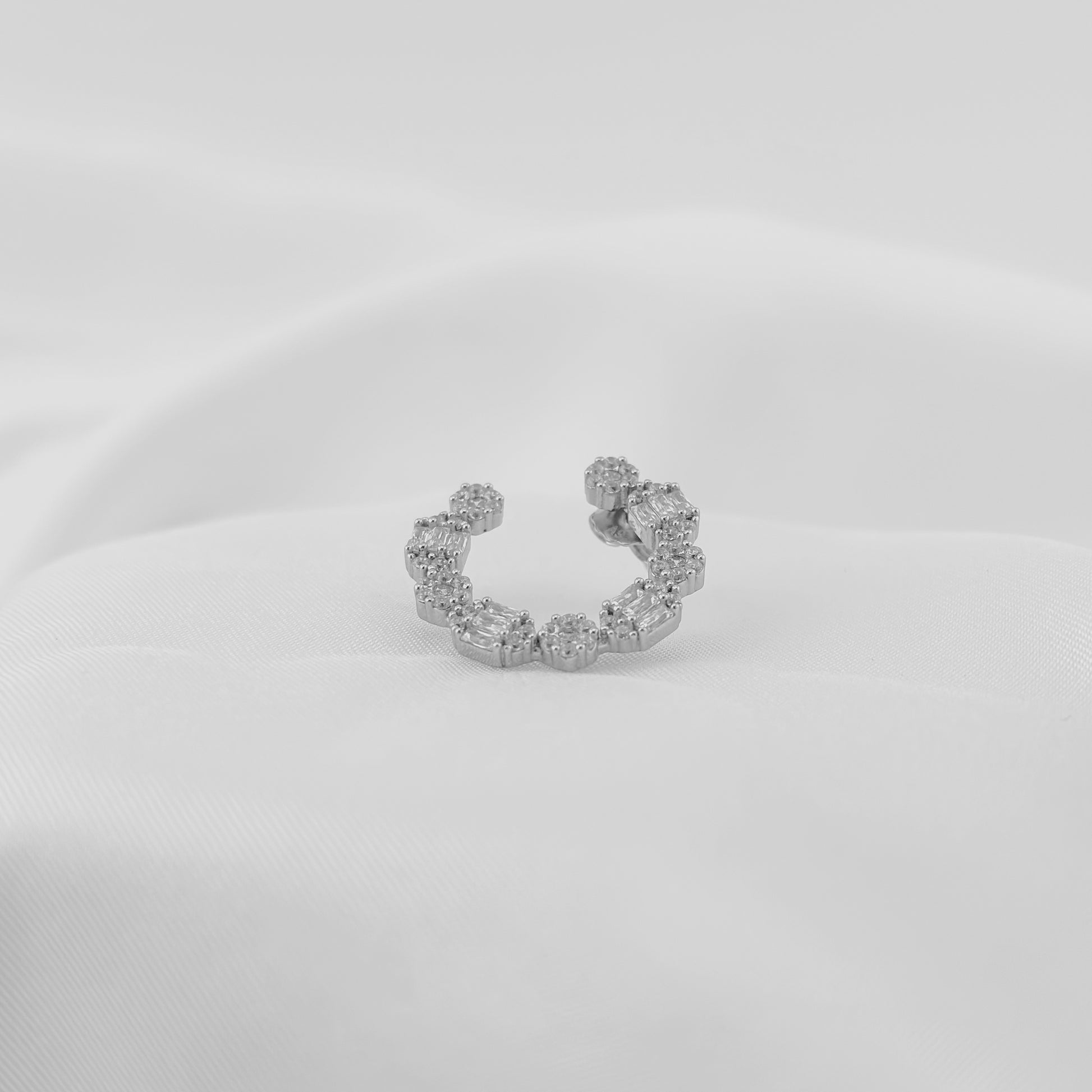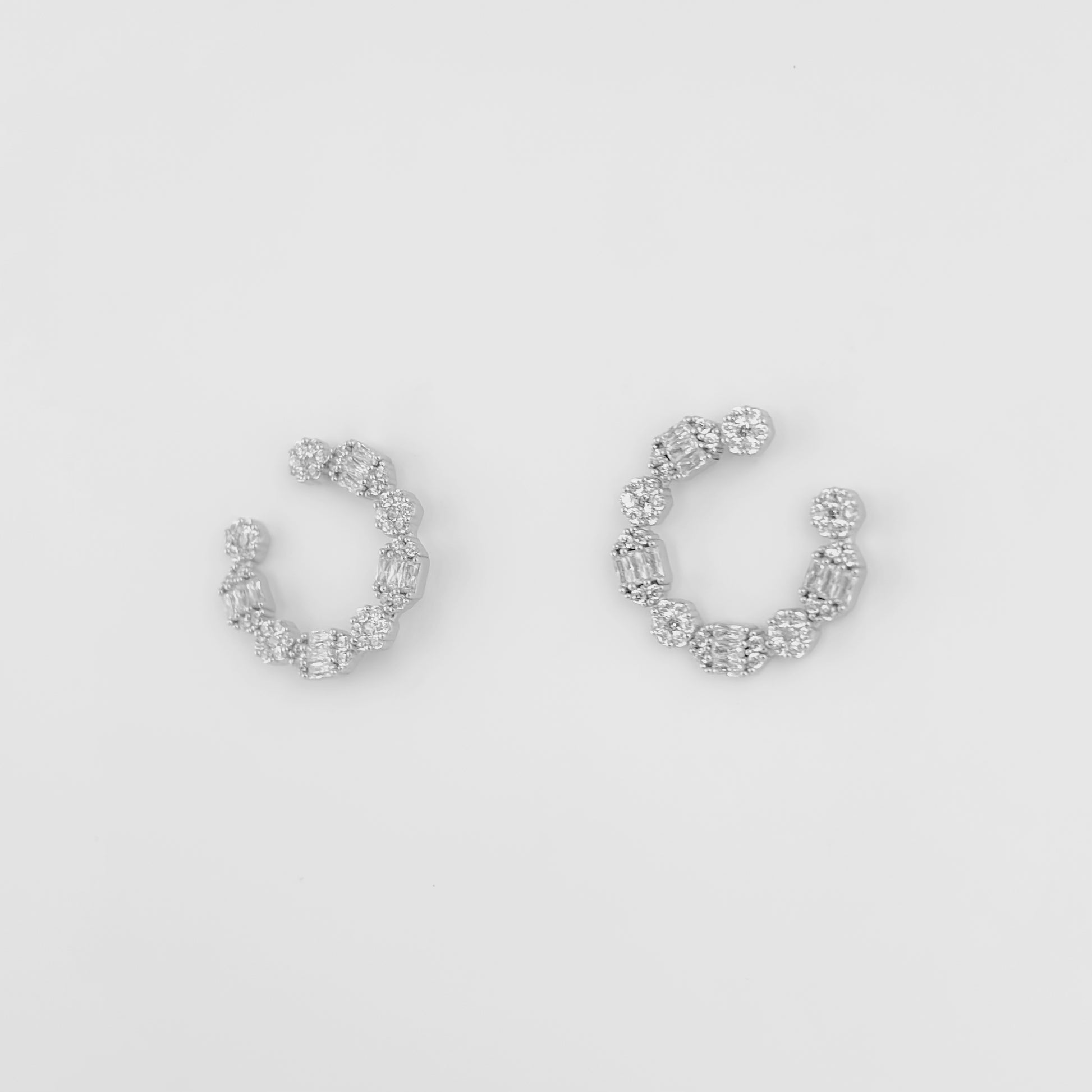 Add a touch of sophistication to your look with these stunning sterling silver hoop earrings. Adorned with a brilliant mix of round and baguette-cut diamonds, these earrings offer a dazzling sparkle and an elegant design. Perfect for both everyday wear and special occasions, they bring timeless beauty and modern charm to any jewelry collection.