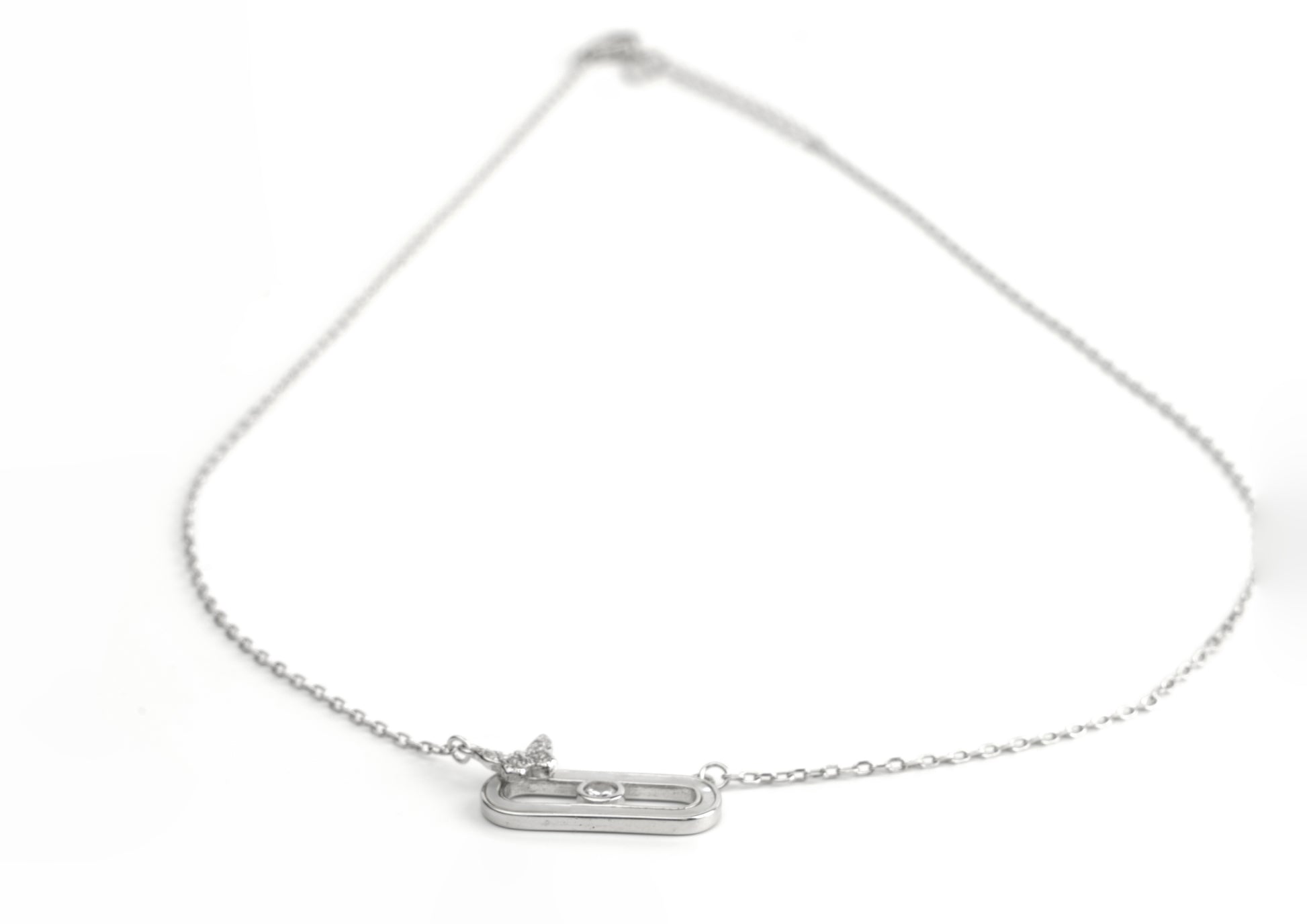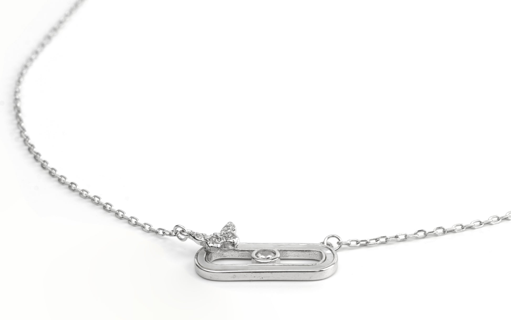 Delicate yet distinctive, the Whispering Wings Silver Necklace captures the essence of subtle elegance. Crafted in pure silver, this necklace features a sleek, oval pendant adorned with a finely detailed butterfly motif, symbolizing transformation and grace. The minimal design is elevated by a single sparkling cubic zirconia, adding just the right touch of shine. Perfect for everyday wear or layering, itβs a must-have for lovers of modern, meaningful jewellery.